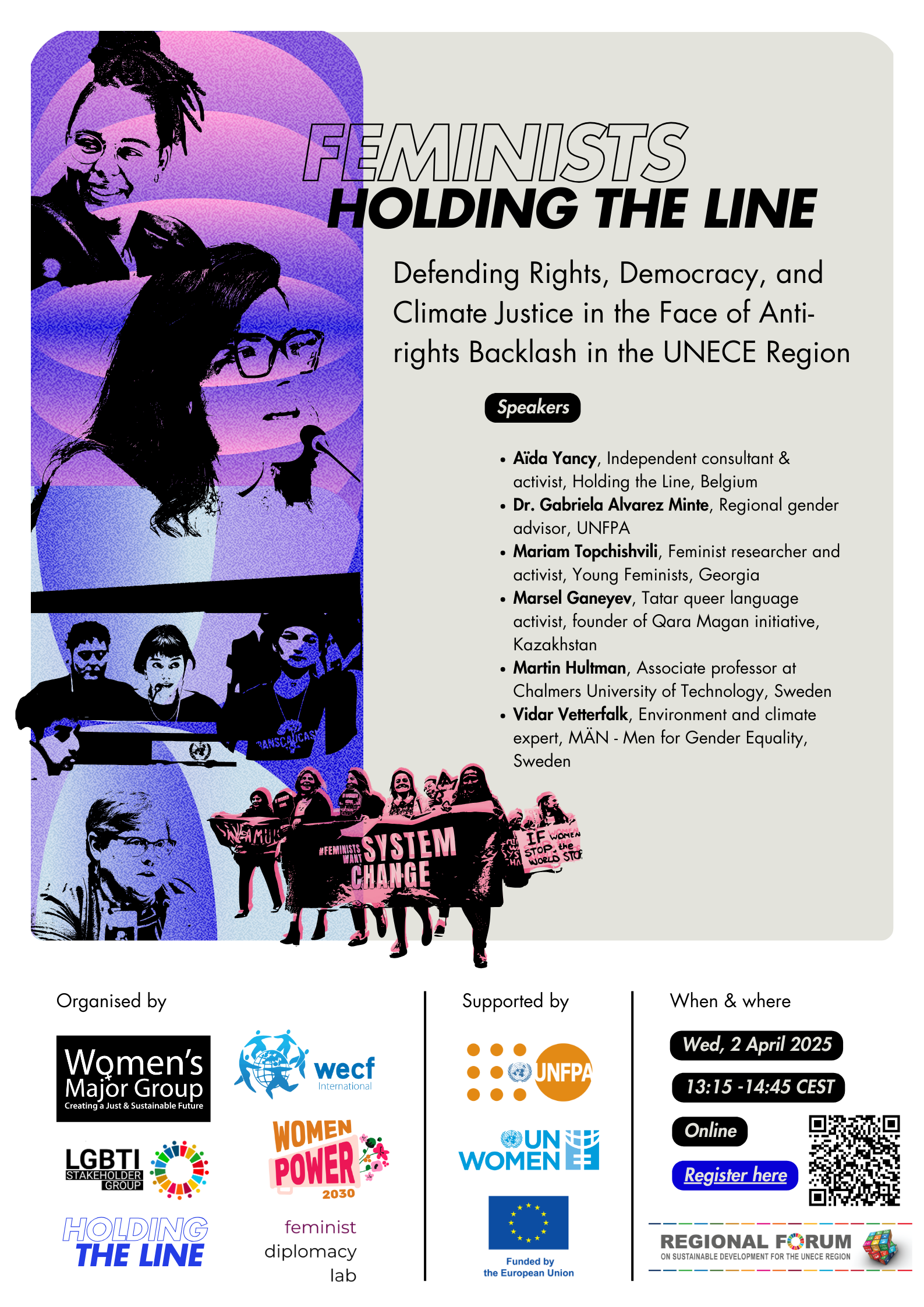 This mobilisation space will map counter-strategies to resist the far right, anti-gender, and anti-rights forces gaining ground across UNECE threatening not just democracy, but also climate justice. With insights from feminist and gender equality organisations, we will strategise to sustain resistance, build alliances, and push back in an era of crisis. SDGs 5, 3, 10, 16, 13.