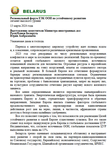 RFSD2025 Statement of Belarus - High Level Policy Segment