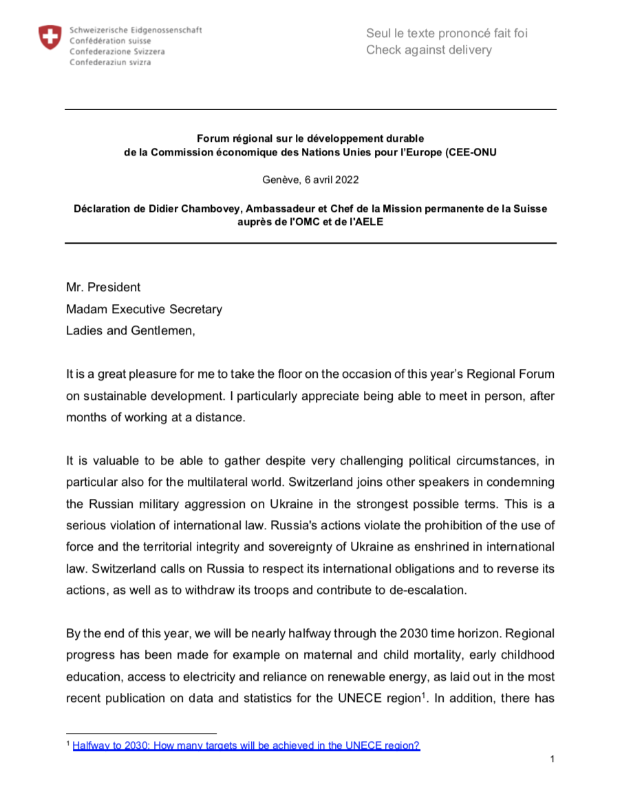 Statement High-level Policy Segment - Switzerland